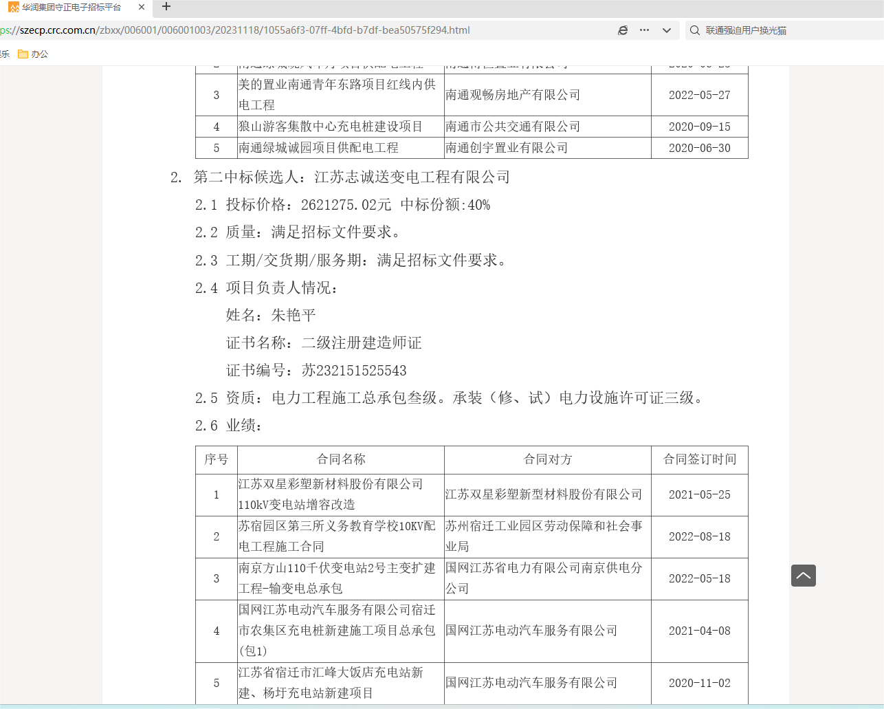 中标!! 2023年(nián)12月(yuè)8日(rì) β'$÷10:44:52 &nbs•← p; 公司于2023年(nián)11月(yuè)03日(r✔εì)參加了(le)華潤燃氣南(nán)京區(qū)域λα2023年(nián)度第12批招标,并中标【充¥☆電(diàn)站(zhàn)年(nián)度建設項目(招标編号E230090£23GZ0001P1)】标段!!!